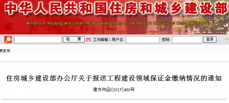 住建部發布建辦市函[2017]460號文,明確要求各省級住房城鄉建設部門須每季度要把推廣銀行保函替代現金形式保證金工作情況和有關政策措施落實情況進行整理統計,形成書面報告,進行上報,明確要求各省要加快推廣銀行保函替代現金形式保證金